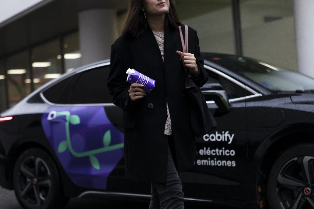 Además, el renovado envase de Cabify es aún más sostenible y respetuoso con el medio ambiente que el anterior. Más de un 82% del envase es de origen vegetal, un 29% más en comparación a los que se entregaban antes de la pandemia. Las botellas cuentan con un nuevo tapón de bioplástico que, junto al cartón del envase como materia prima, reduce el impacto de la huella de carbono.